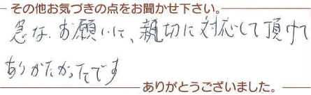 O様 急なお願いに親切に対応して頂けてありがたかったです。