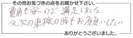 名古屋市 S.F.さま 費用も安いので満足しました。又次の車検の時もお願いしたい。