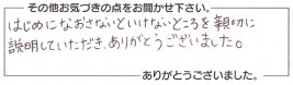 刈谷市 T.O.さま はじめに直さないといけないところを親切に説明していただき、あとがとうございました。